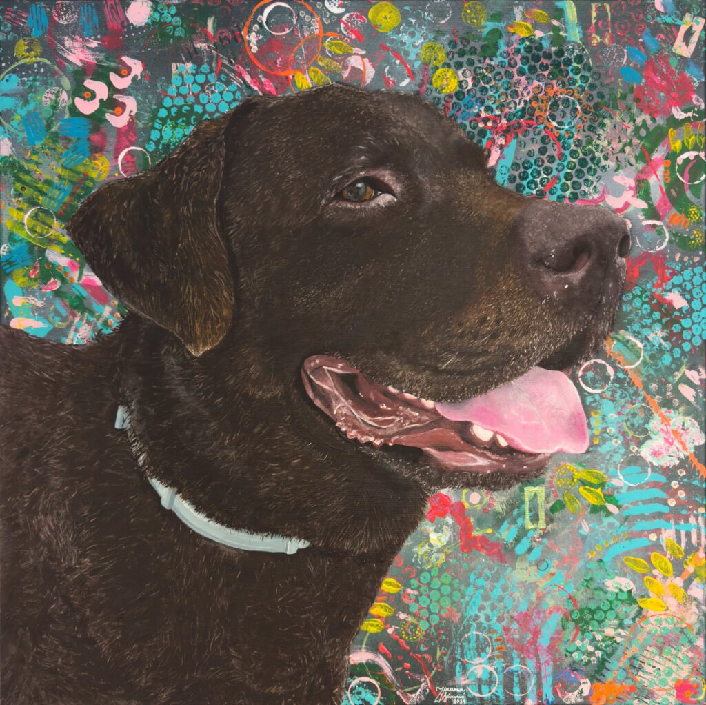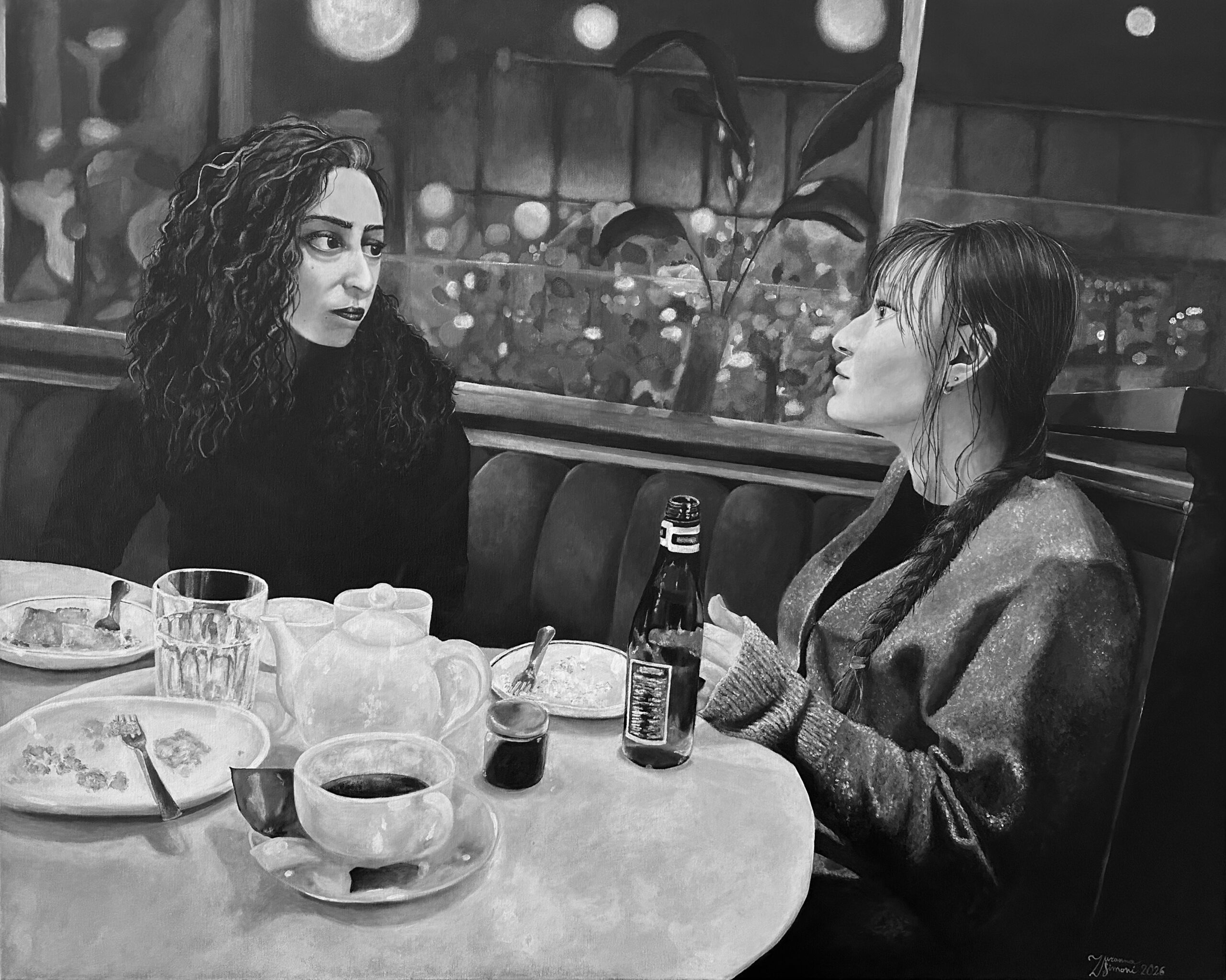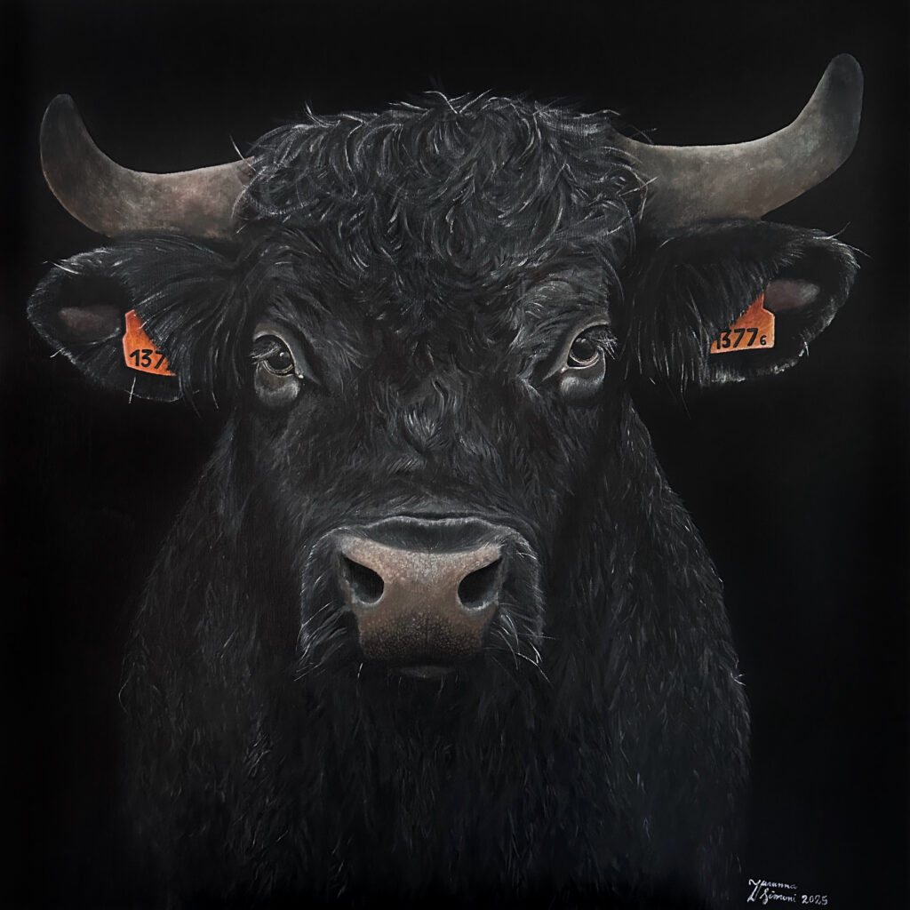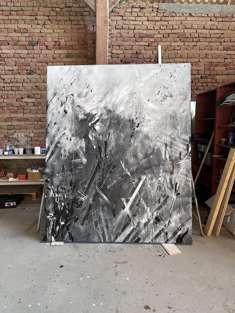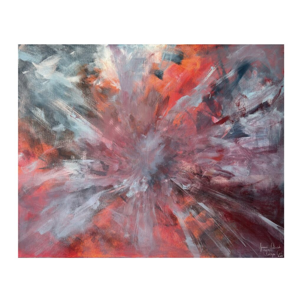 80 x 80, akryl na płótnie bawełnianym. Obraz wylicytowany podczas aukcji Młodej sztuki w DESA Unicum.